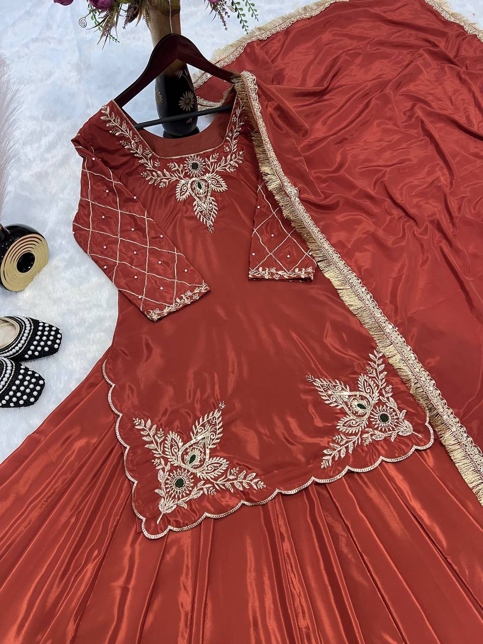 Designer Full-Sleeve Lehenga Choli in Natural Crepe Silk with Sequin & Zari Work