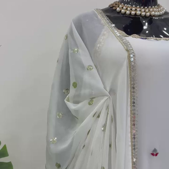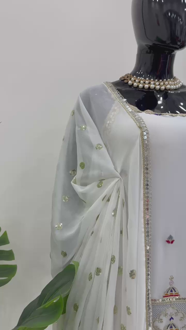 Designer Party Wear Suit with Sequin Sharara and Lace Dupatta