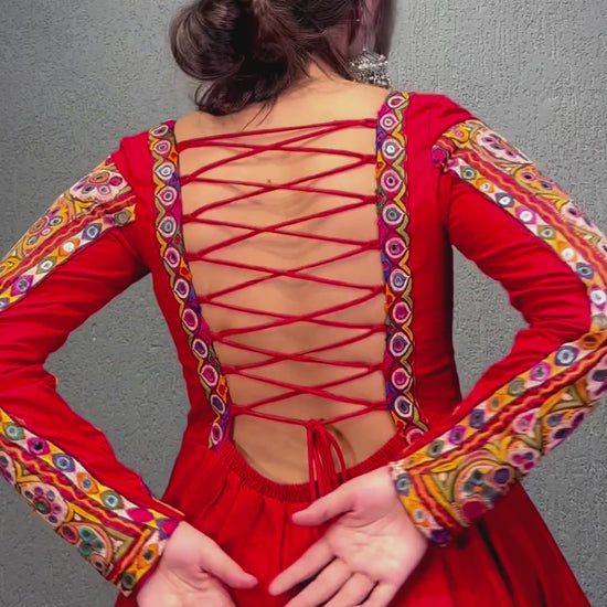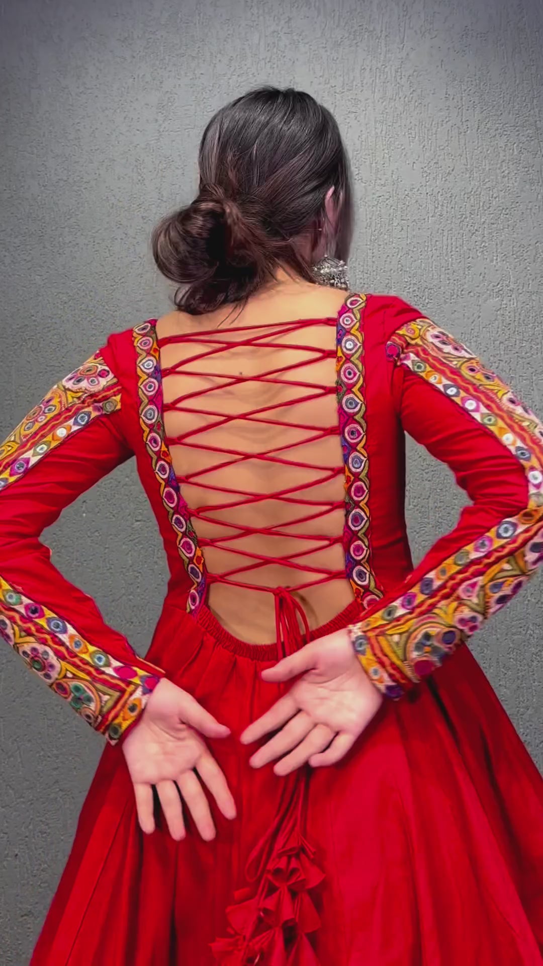 ✨ Elevate your Navratri look with this beautifully crafted gown set — a blend of tradition, comfort, and festive charm.
