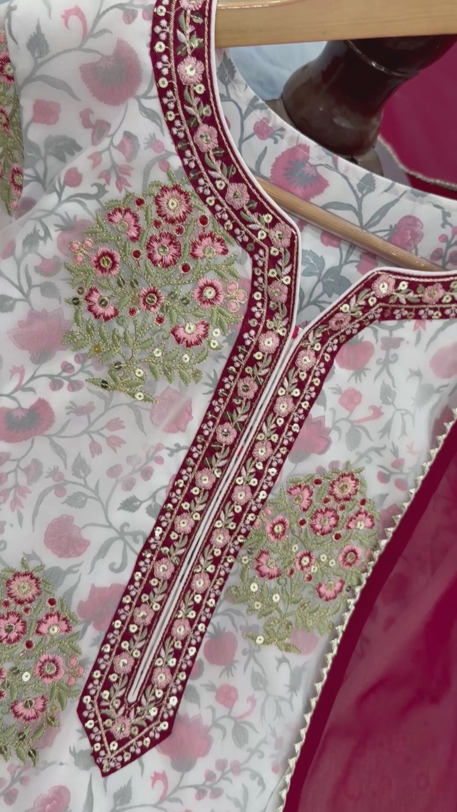 - Fabric: Heavy France Crepe with Digital Print & Embroidery