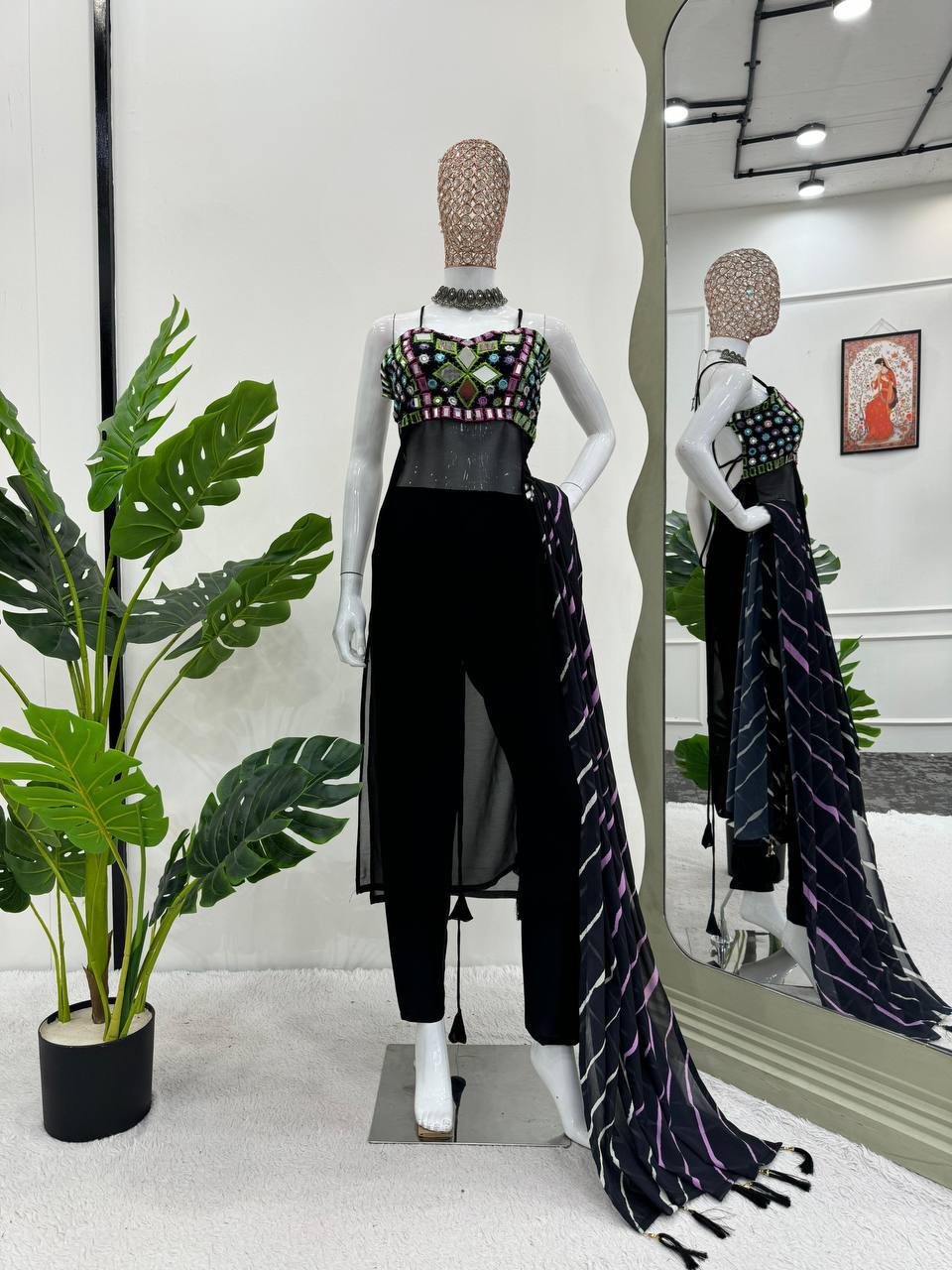 Radiant Real Mirror Work Suit with Digital Print Dupatta