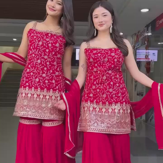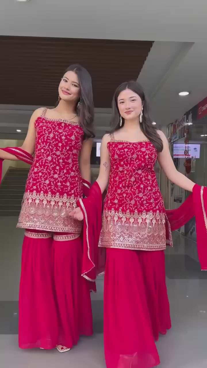 Stylish Georgette Sharara Set with Thread & Sequin Work
