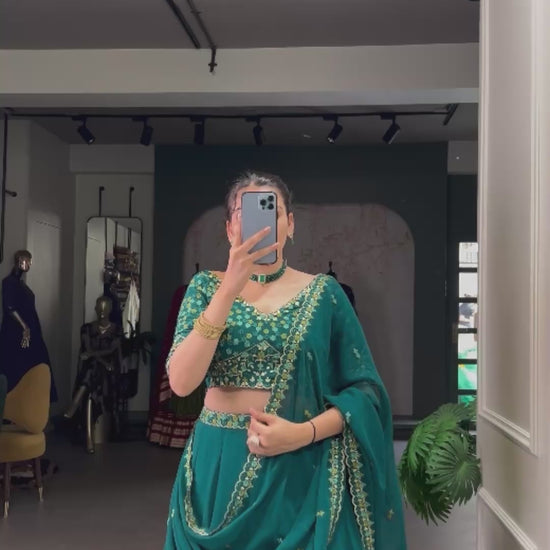 Thread Embroidered Georgette Lehenga Choli – 5 Meter Flair Set